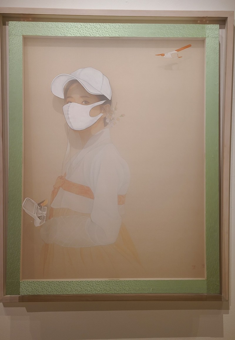 조선시대 명화에 등장하는 미인을 채색화 기법을 통해 현대적으로 해석하여 포스트 코로나 시대를 상징적으로 나타내고 있습니다.