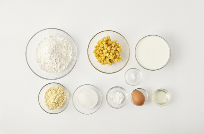 1. 밀, 옥수수가루, 베이킹파우더, 설탕, 소금을 섞어 체에 친다.