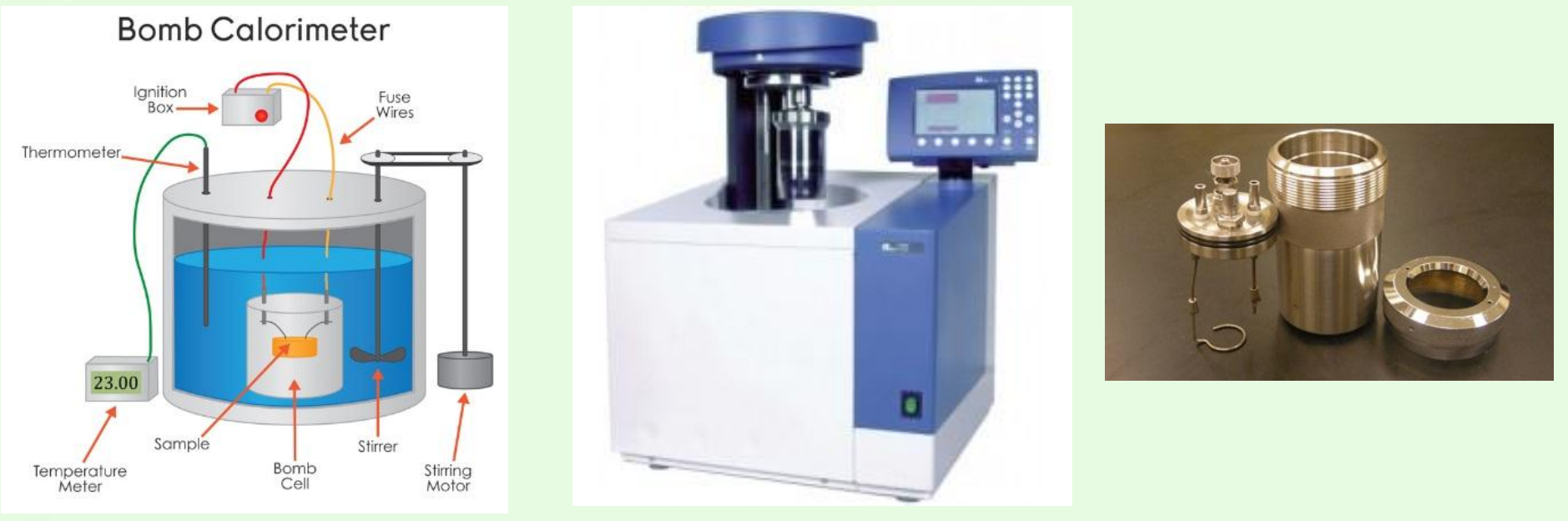 - 방법: 열량계(Bomb Calorimeter)를 이용하여 측정