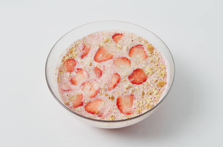 4. 딸기요거트에 생딸기와 부순 쿠기를 섞는다.
