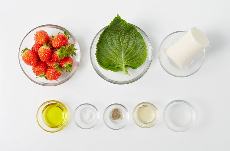 ▶주재료 : 딸기(12개), 깻잎(5장), 순두부(1/2봉=170g)