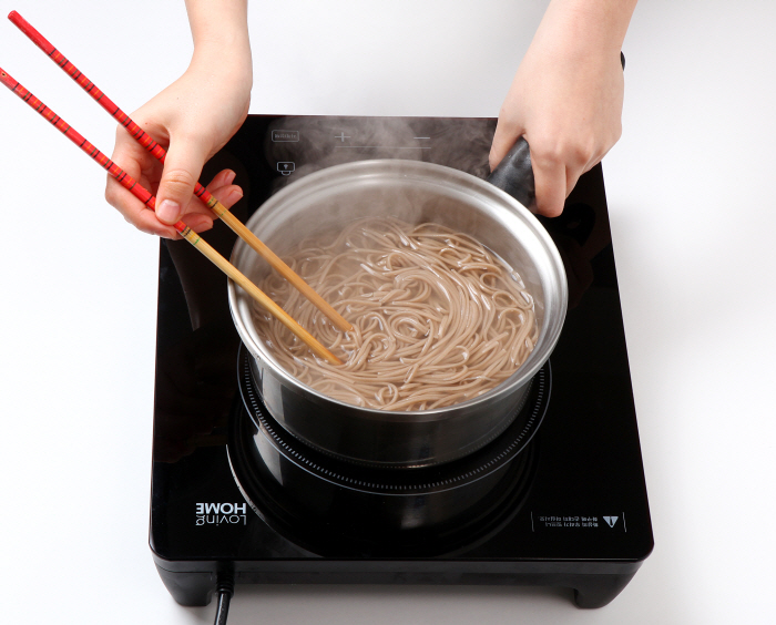 5. 넉넉한 냄비에 2L의 물을 부어 끓으면 메밀면을 넣고 끓인다.