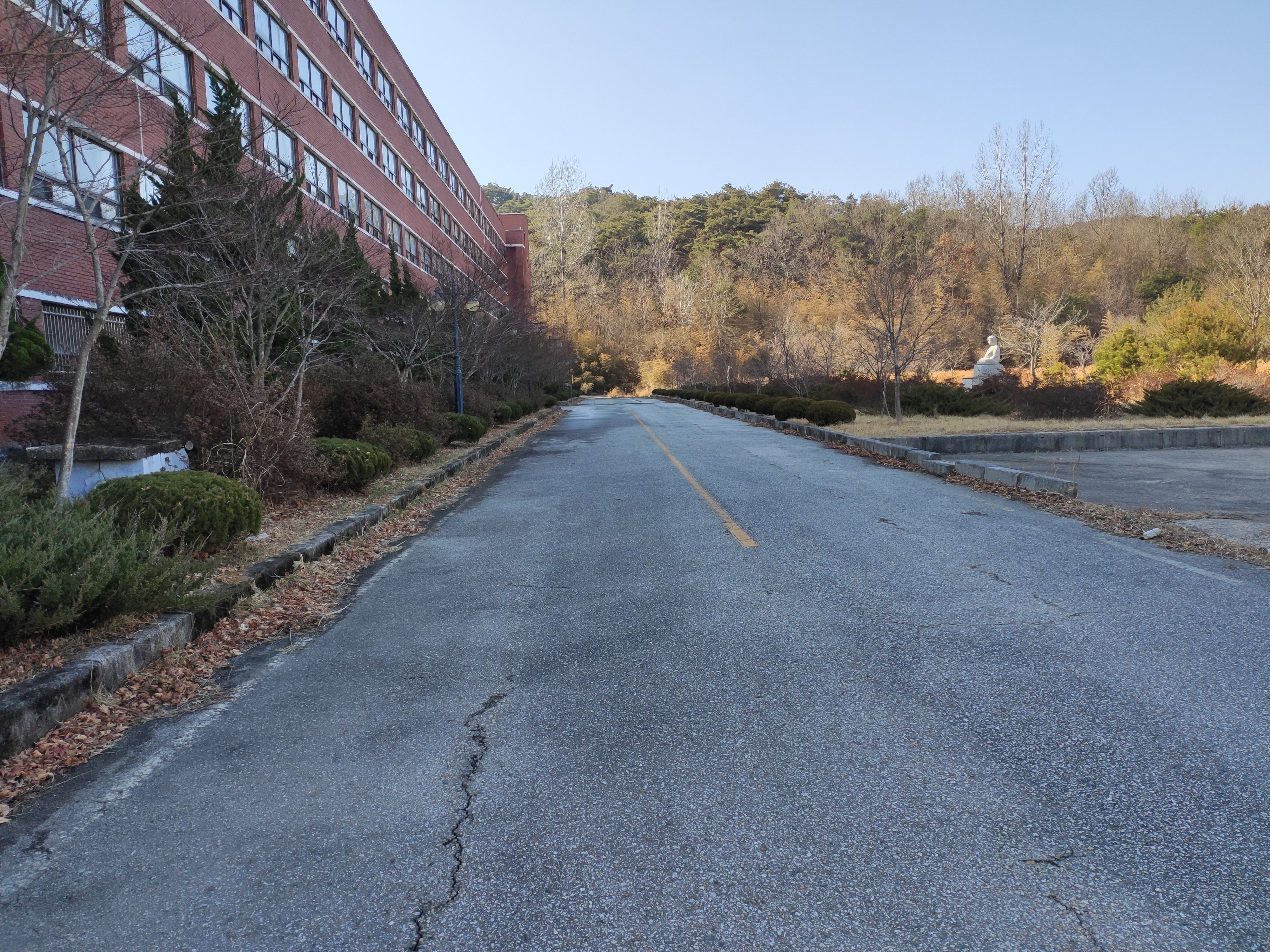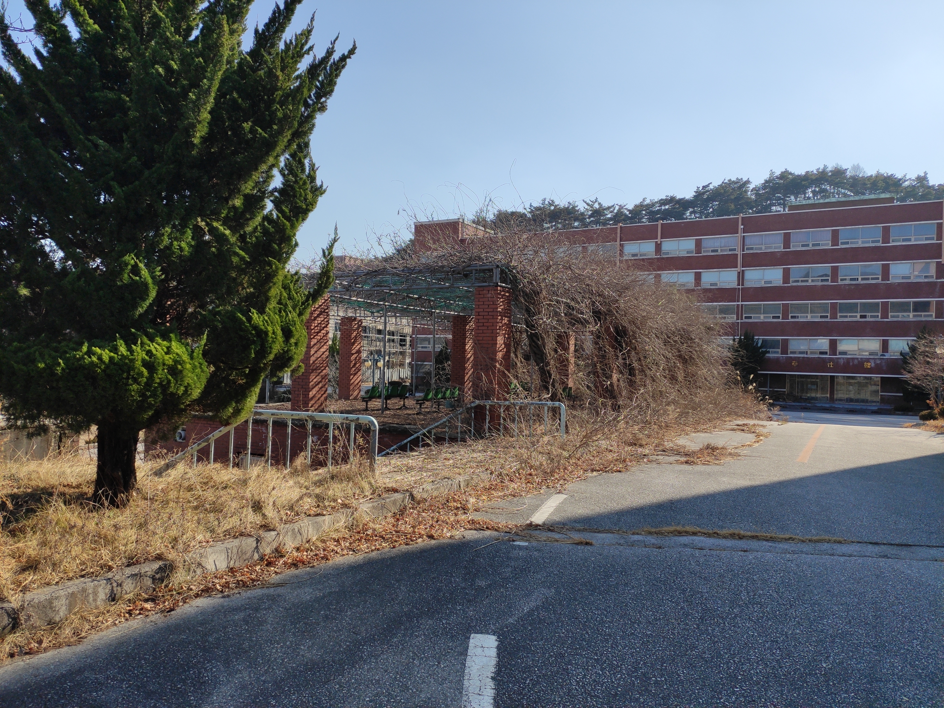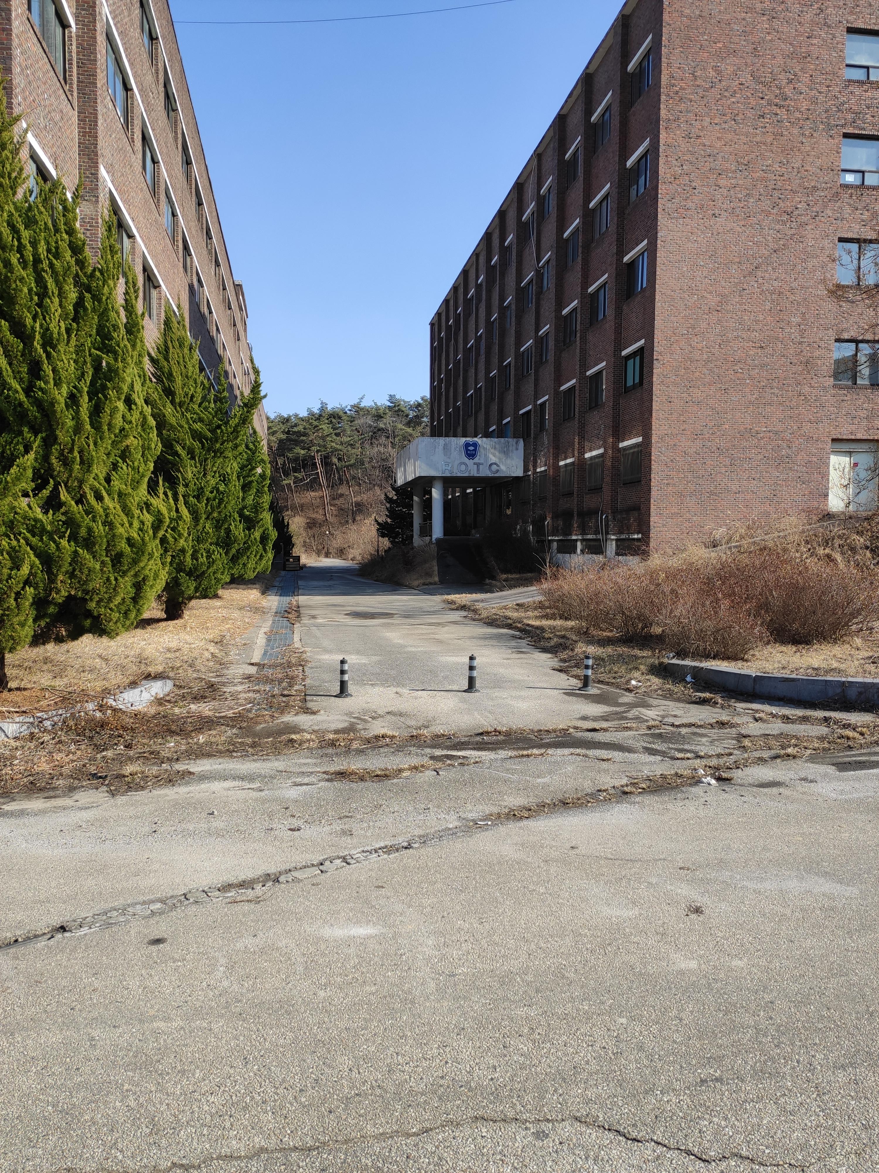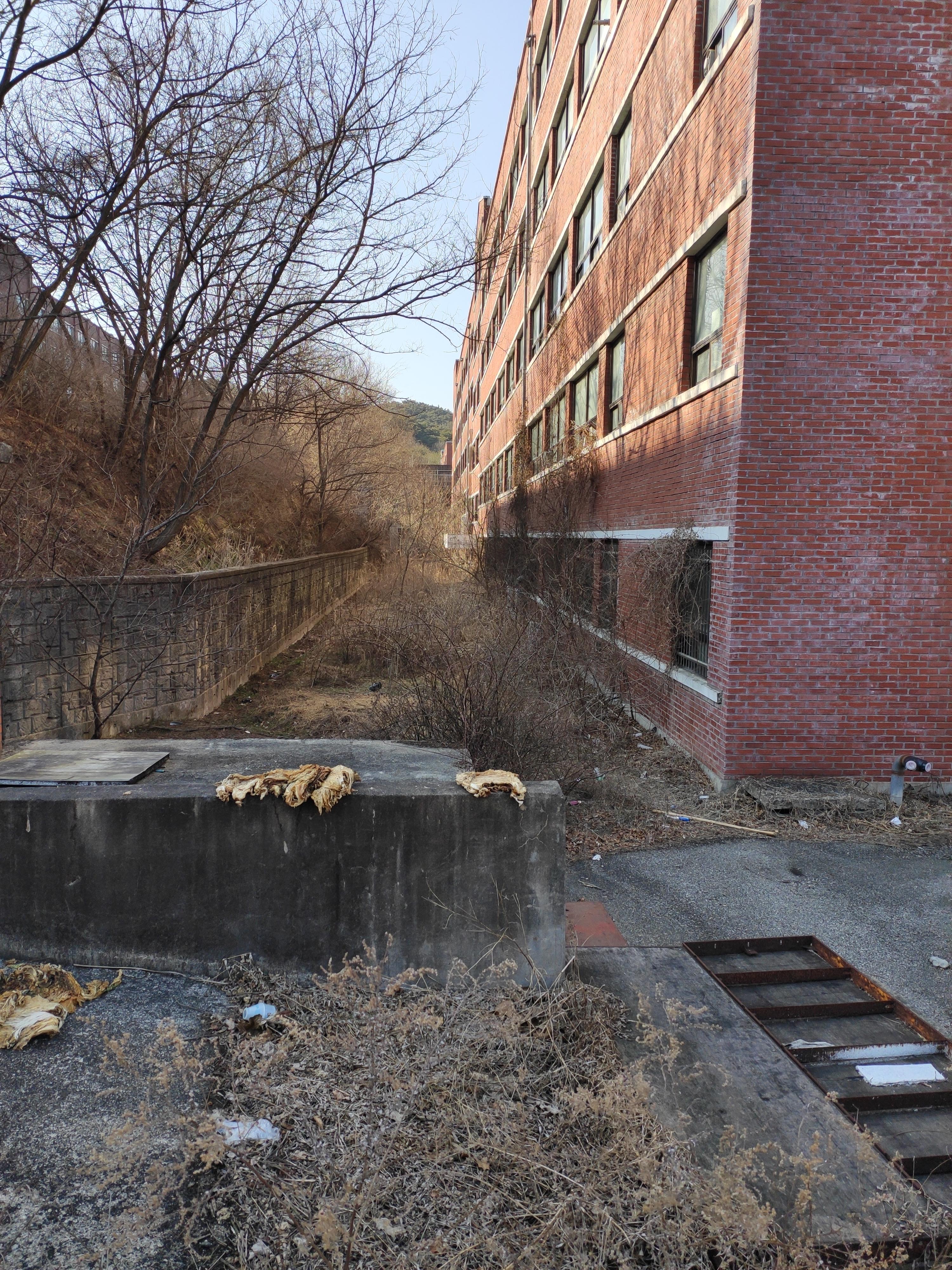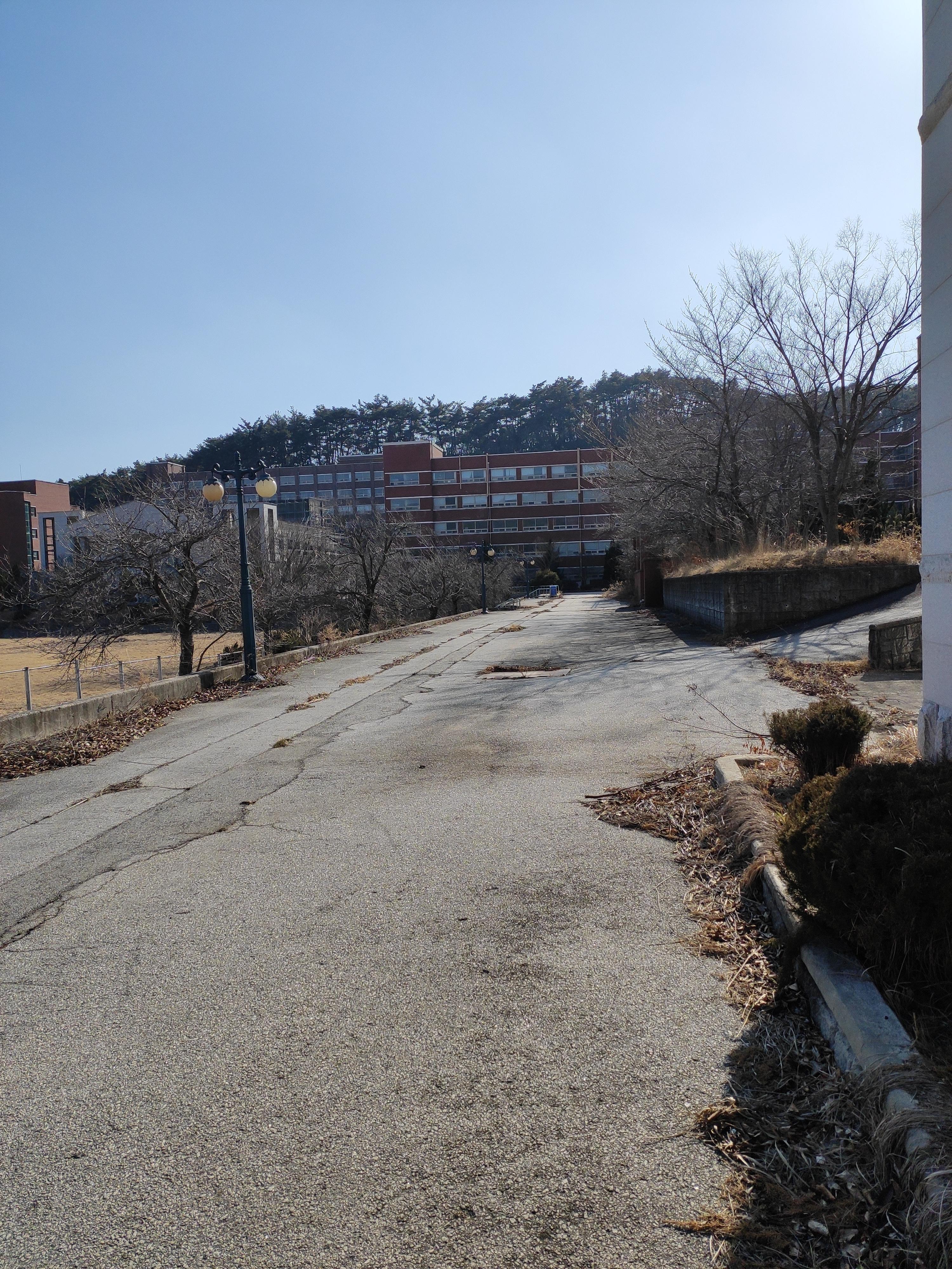 후문쪽인데 쓸쓸하네요. 그래도 문이 열려있어서 운동장에서 운동하는 모습이나 아주 드물게 걷는 사람도 있었습니다.