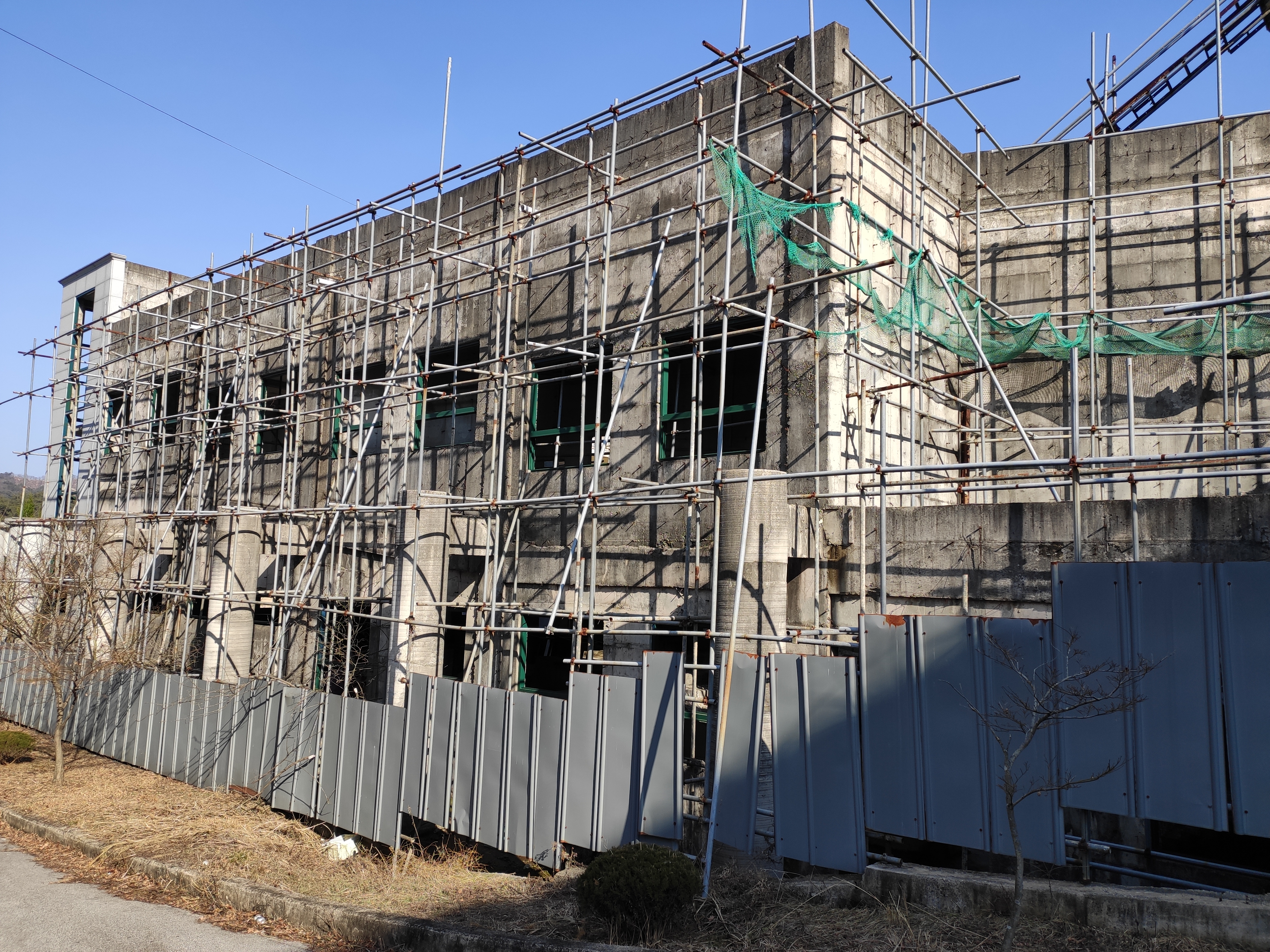 건물도 짓다 만 모습 그대로 남아서 녹슬고 있었습니다.