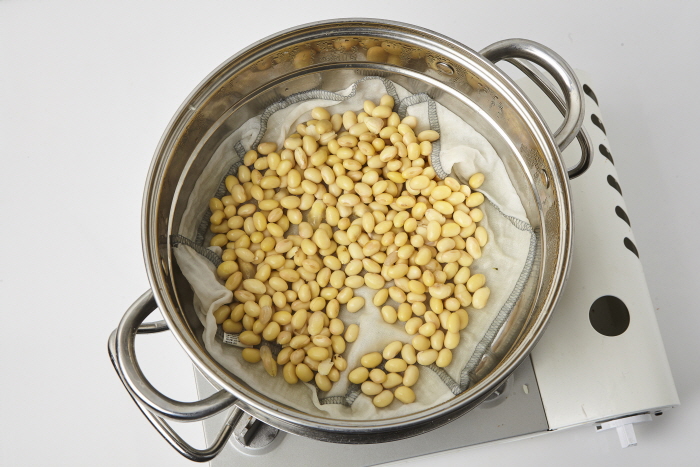 1. 김이 오른 찜기에 불린 콩을 넣어 30분간 찐다.