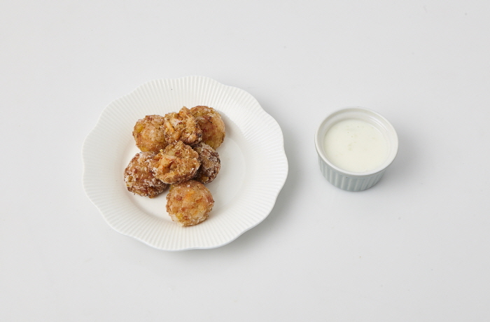 5. 180℃로 달군 식용유(2컵)에 반죽을 넣어 5분간 굴려가며 튀긴다.