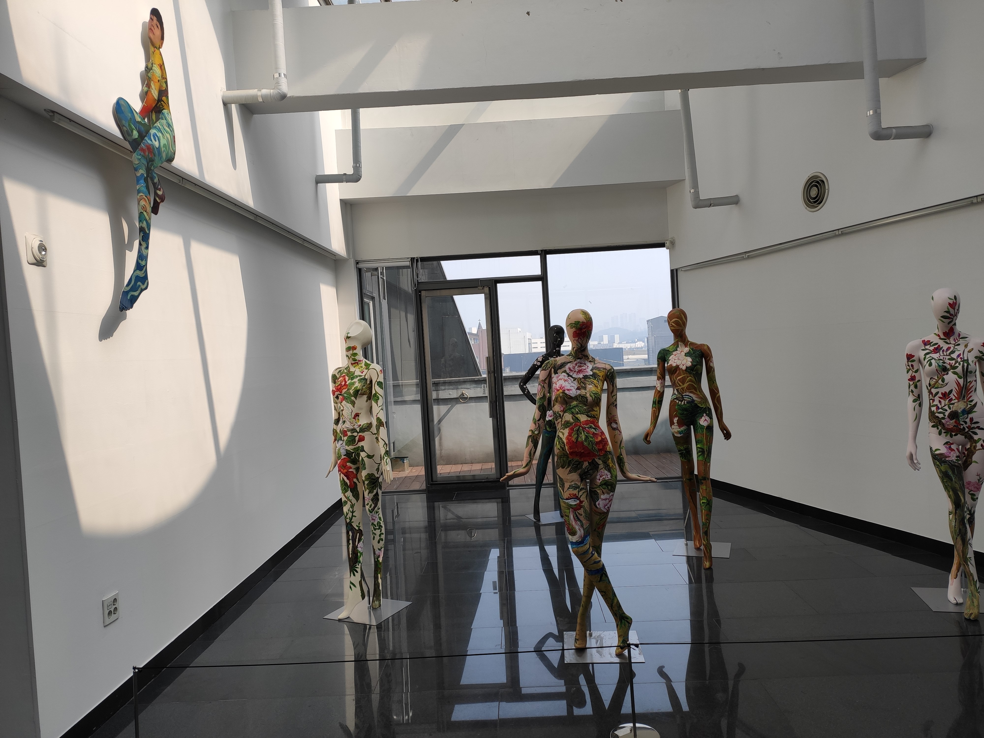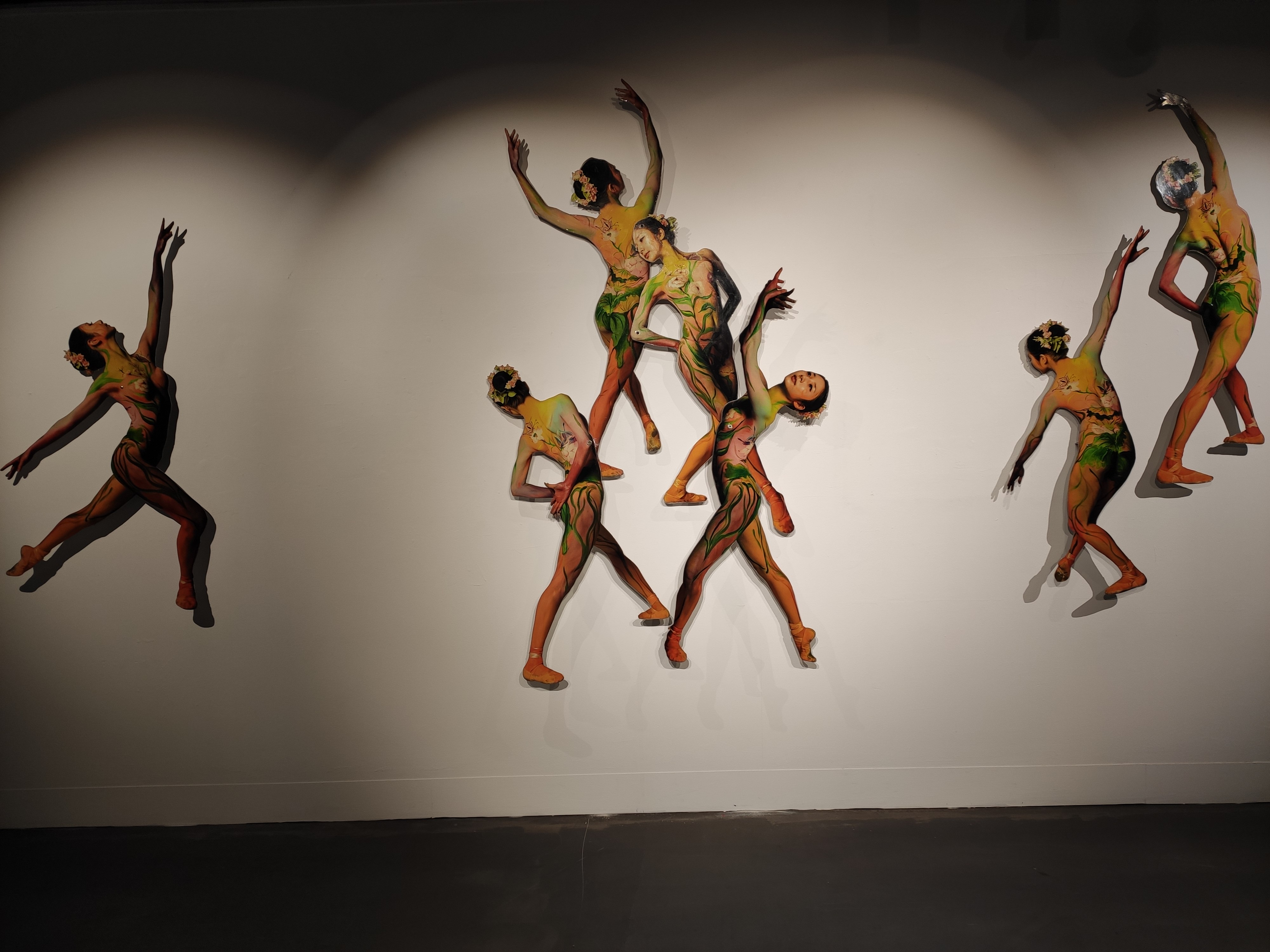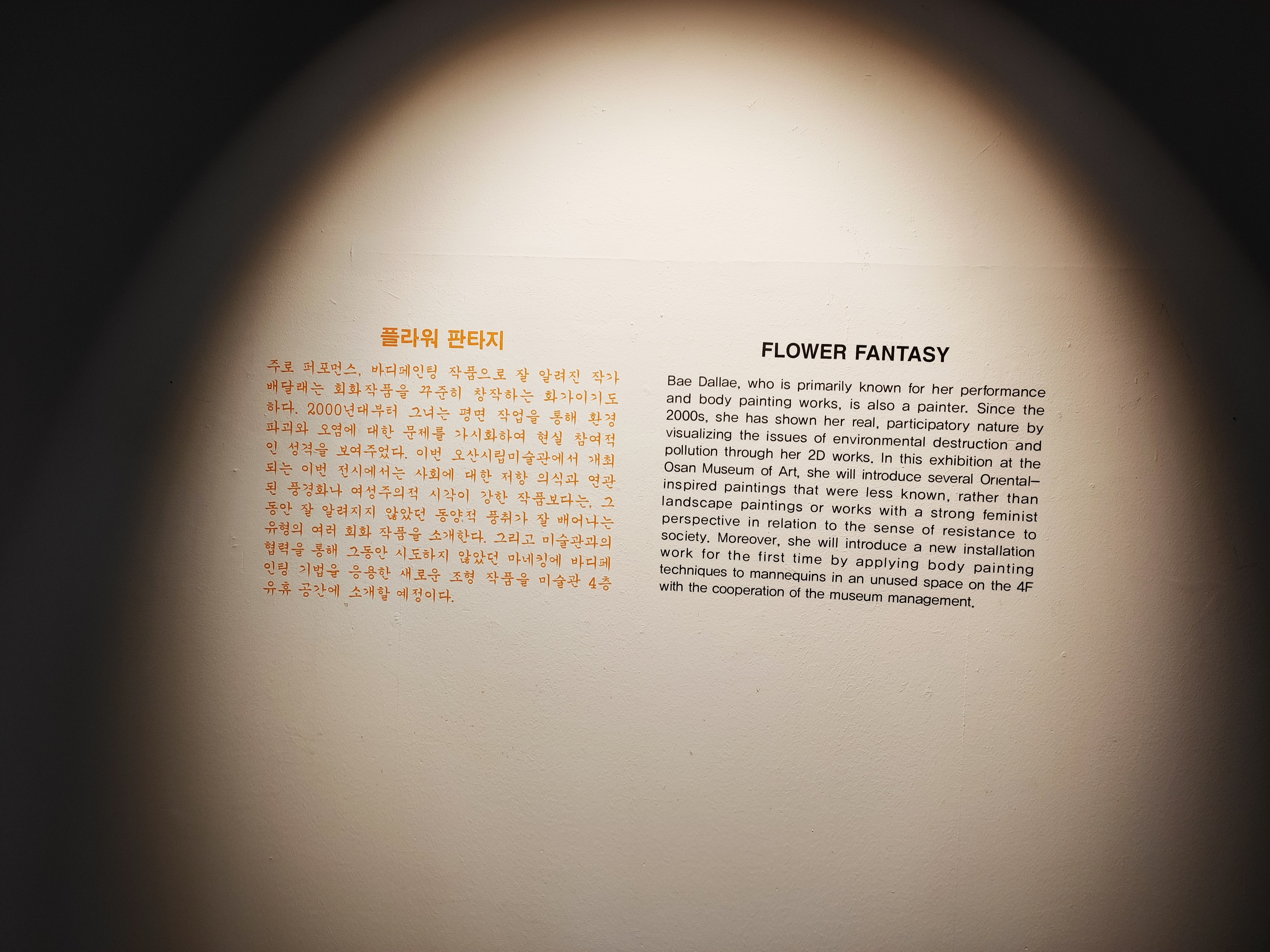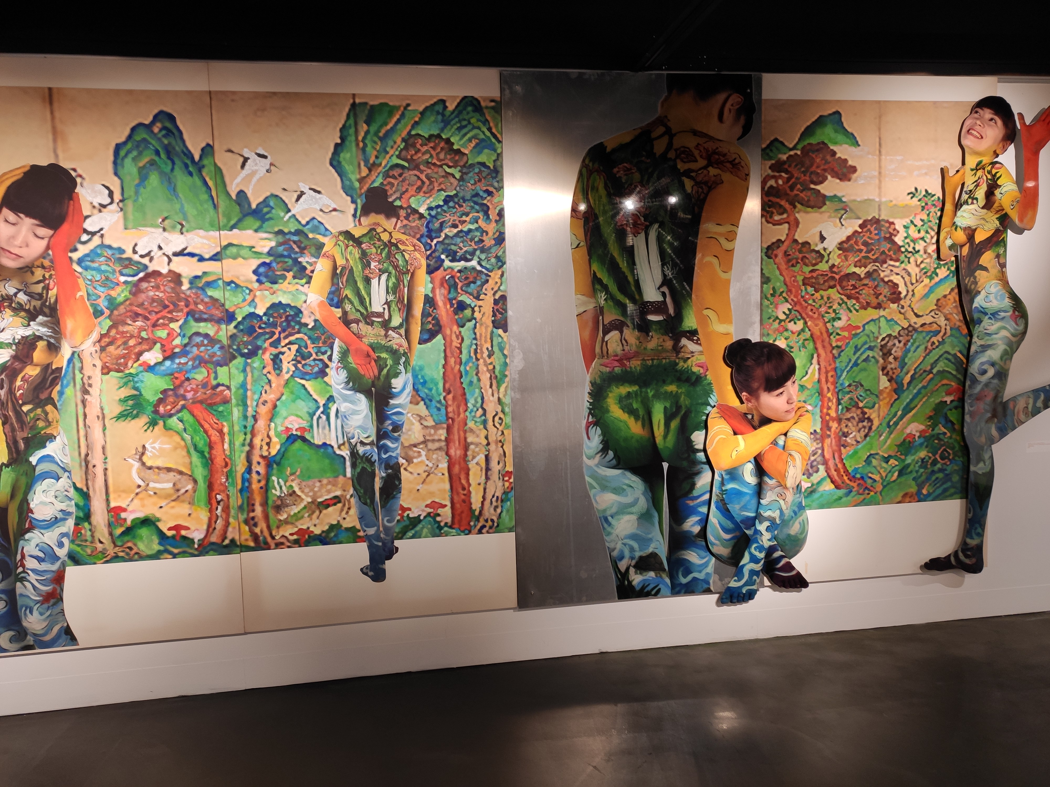 복도에도 전시가 되어있습니다. 맨 왼쪽의 위의 사람얼굴 사진이 작가님으로 보입니다. 봄을 맞아서 꽃을 소재로 한 바디페인팅이 잘어울립니다.