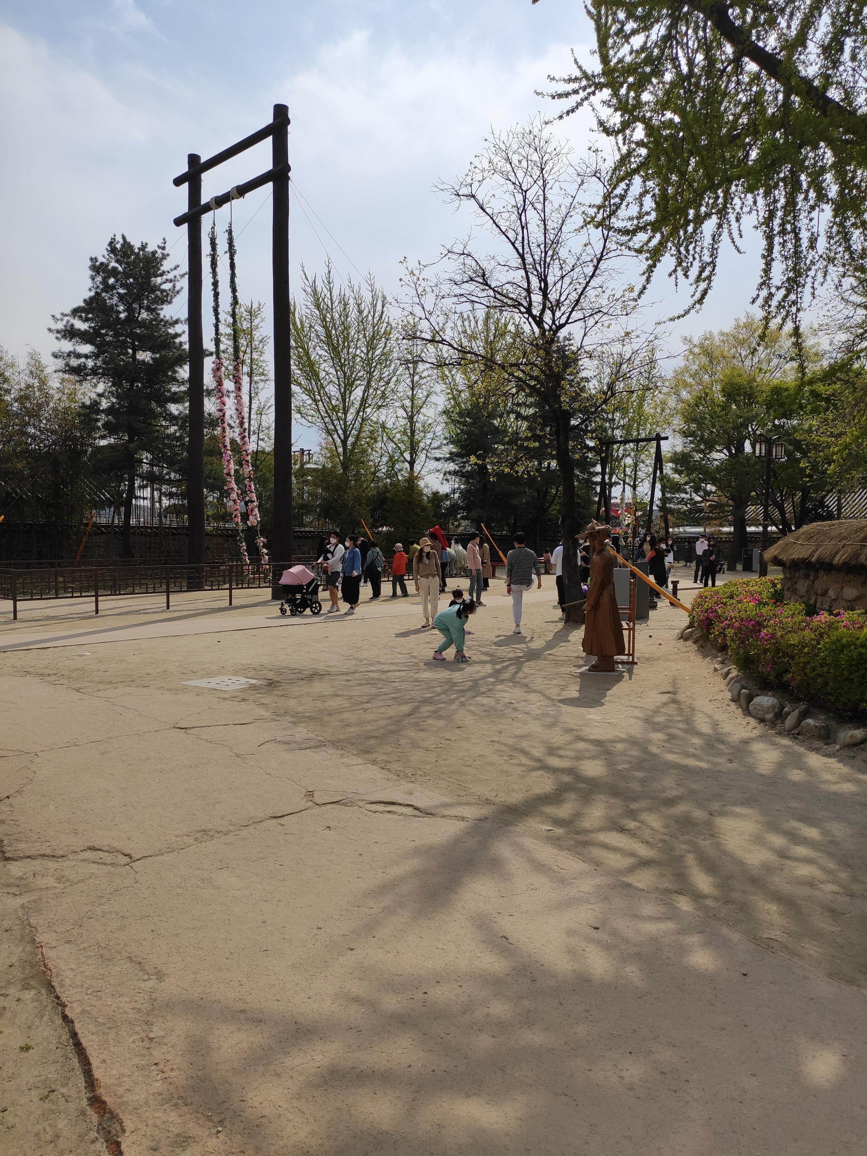 그네 타기는 힘들겠네요 봄이라서 이쁘게 꽃도 달았네요