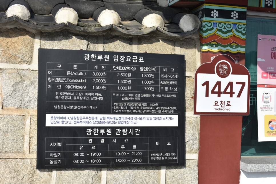 원래 광한루는 조선 세종 원년(1419)에 황희가 광통루라는 누각을 짓고, 산수를 즐기던 곳이었습니다. 1444년 전라도 관찰사 정인지가 광통루를 거닐다가 아름다운 경치에 취하여 이곳을 달나라 미인 항아가 사는 월궁속의 광한청허부(廣寒淸虛府)라 칭한 후 ‘광한루’라 이름을 부르게 되었다고 하네요. 1461년 부사 장의국은 광한루를 보수하고, 요천의 맑은 물을 끌어다가 하늘나라 은하수를 상징하는 연못을 만들어서 광한루가 생겼다고 합니다.