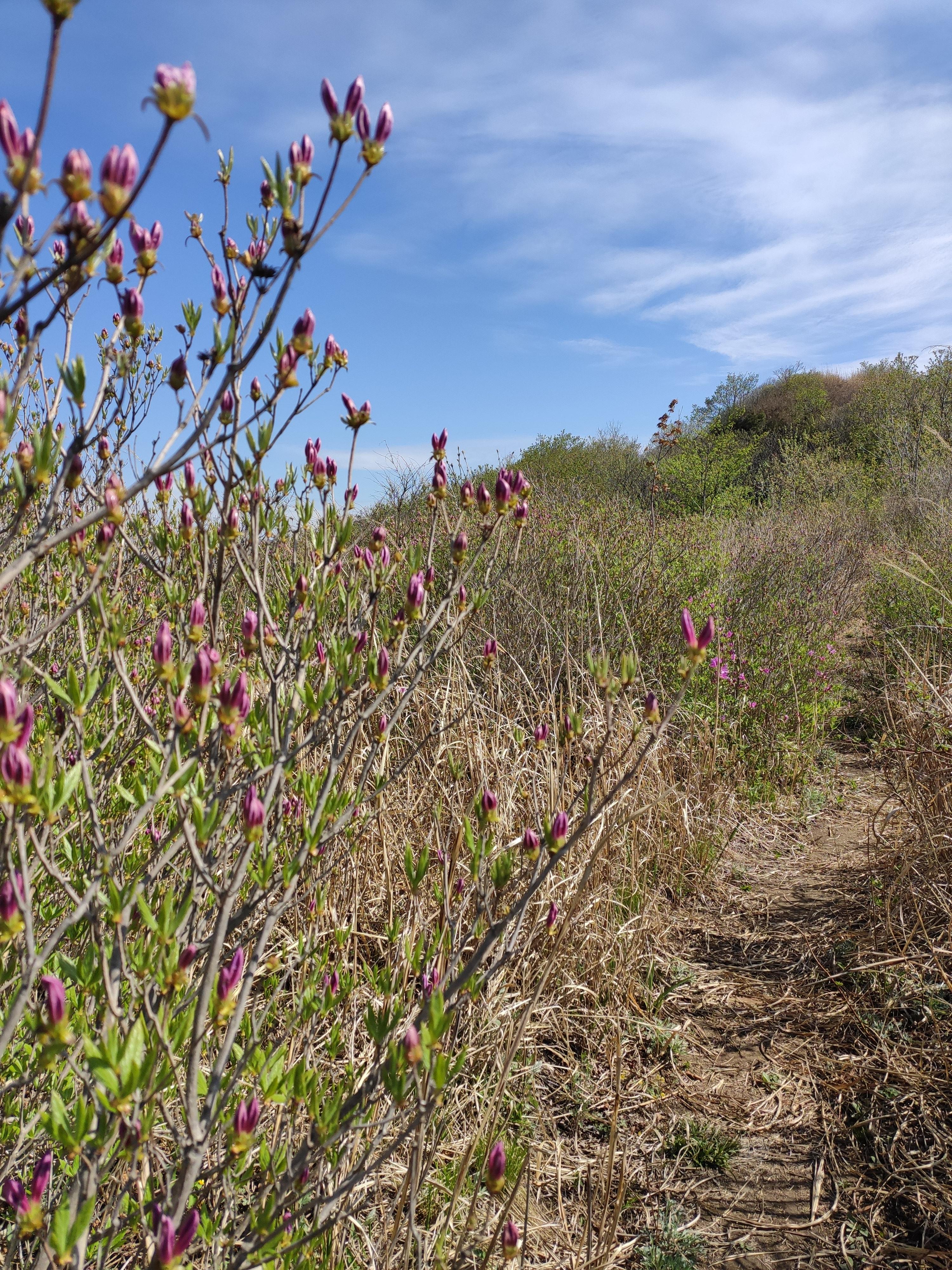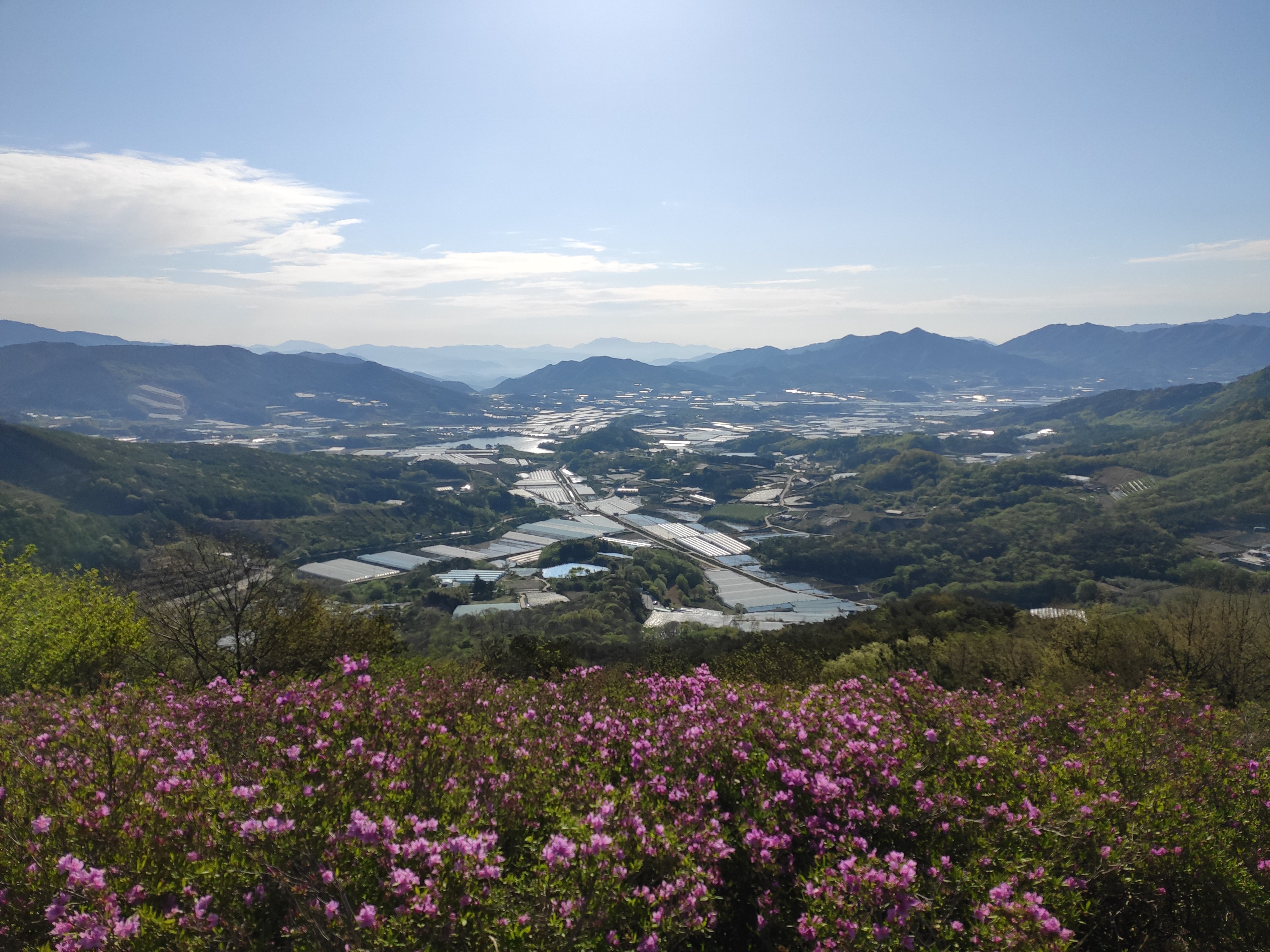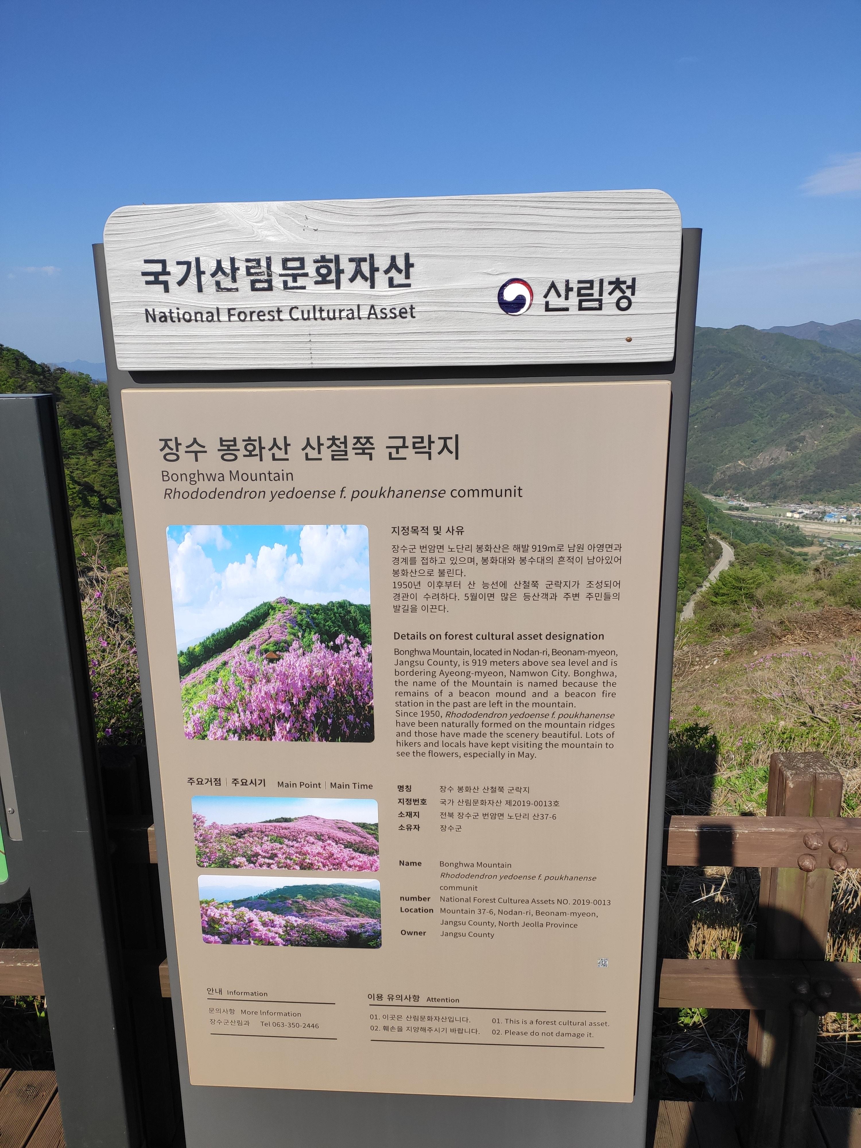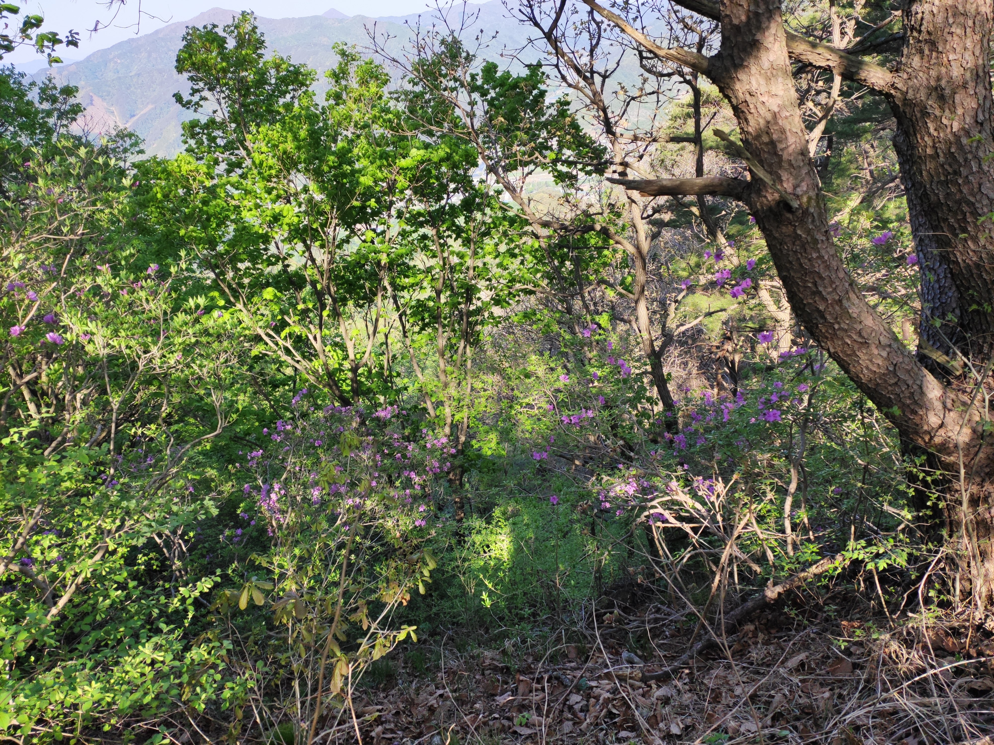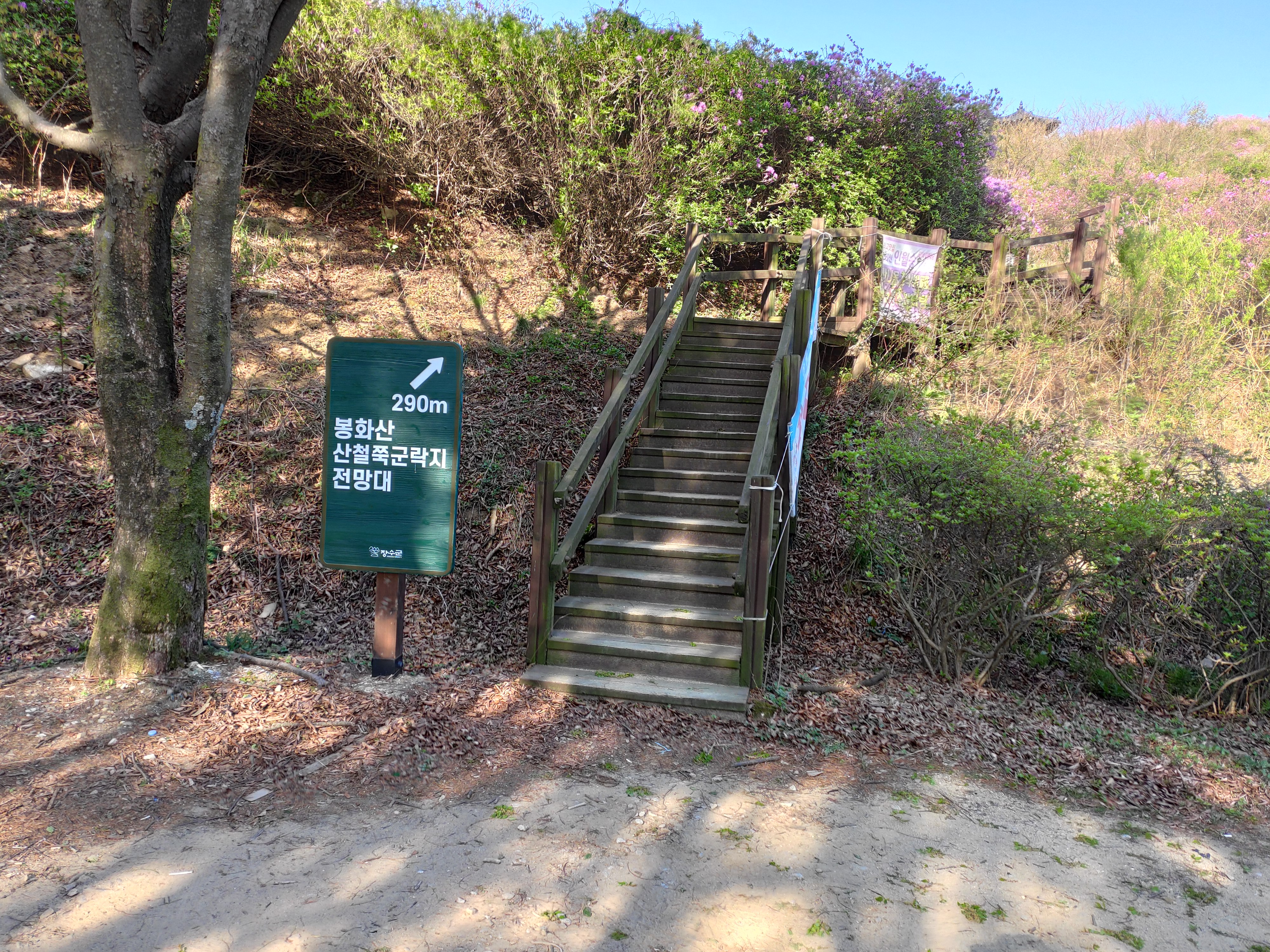 봉화산 철쭉은 유독 키가 큽니다. 어른도 폭 파묻힐 정도여서 꽃 터널을 걷는 기분이 들정도 인데요. 또한 봉화산 철쭉은 색깔이 붉고 선명해서 유명합니다. 만개시기는 보통 5월 초에서 중순까지 인데요 올해는 날씨가 따뜻해서 인지 4월 말경인데 거의 져가는 모습이었습니다.