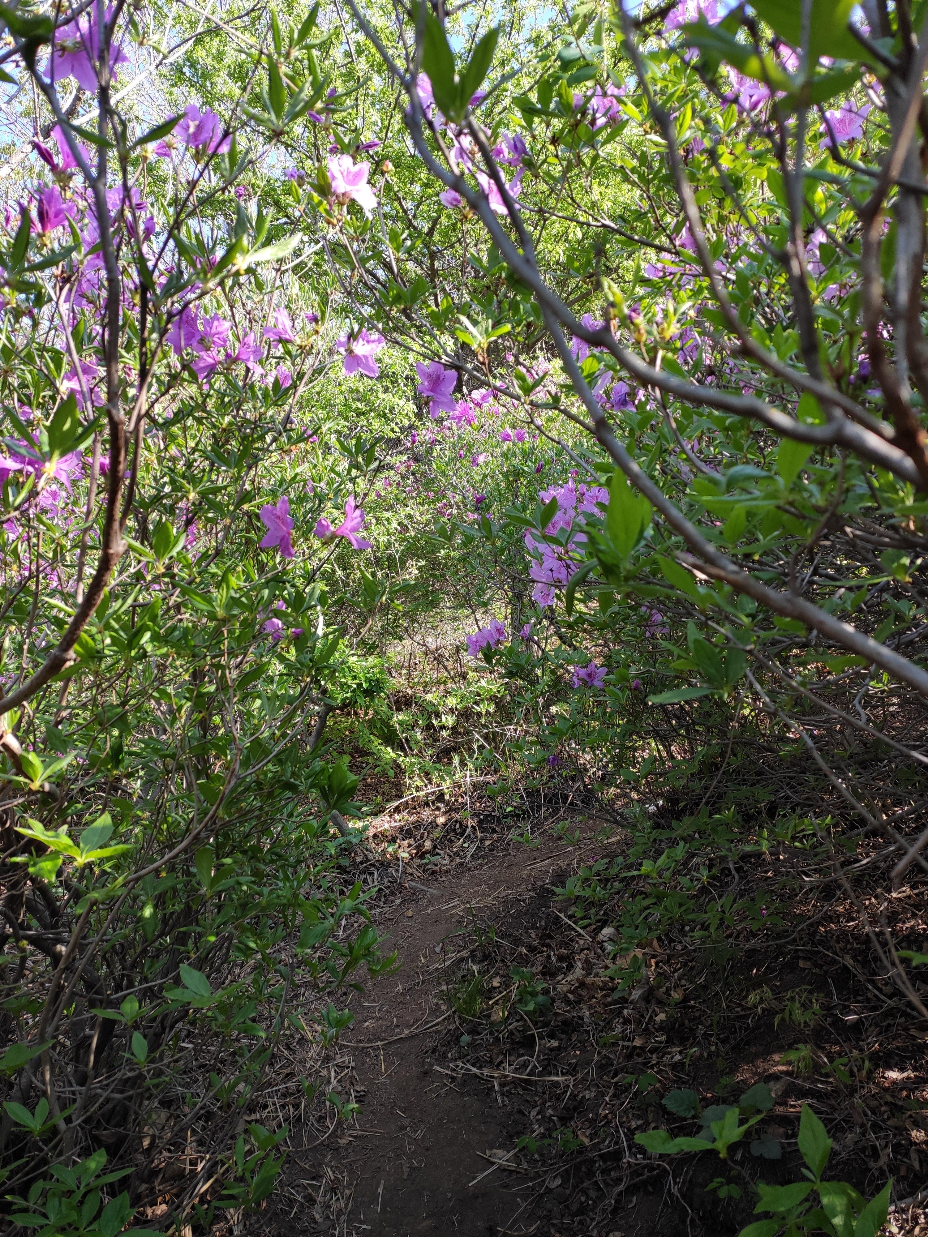 철쭉 덩굴 사이를 해치고 지나가야 합니다. 키 높이라서 고개를 숙이고 가야합니다.