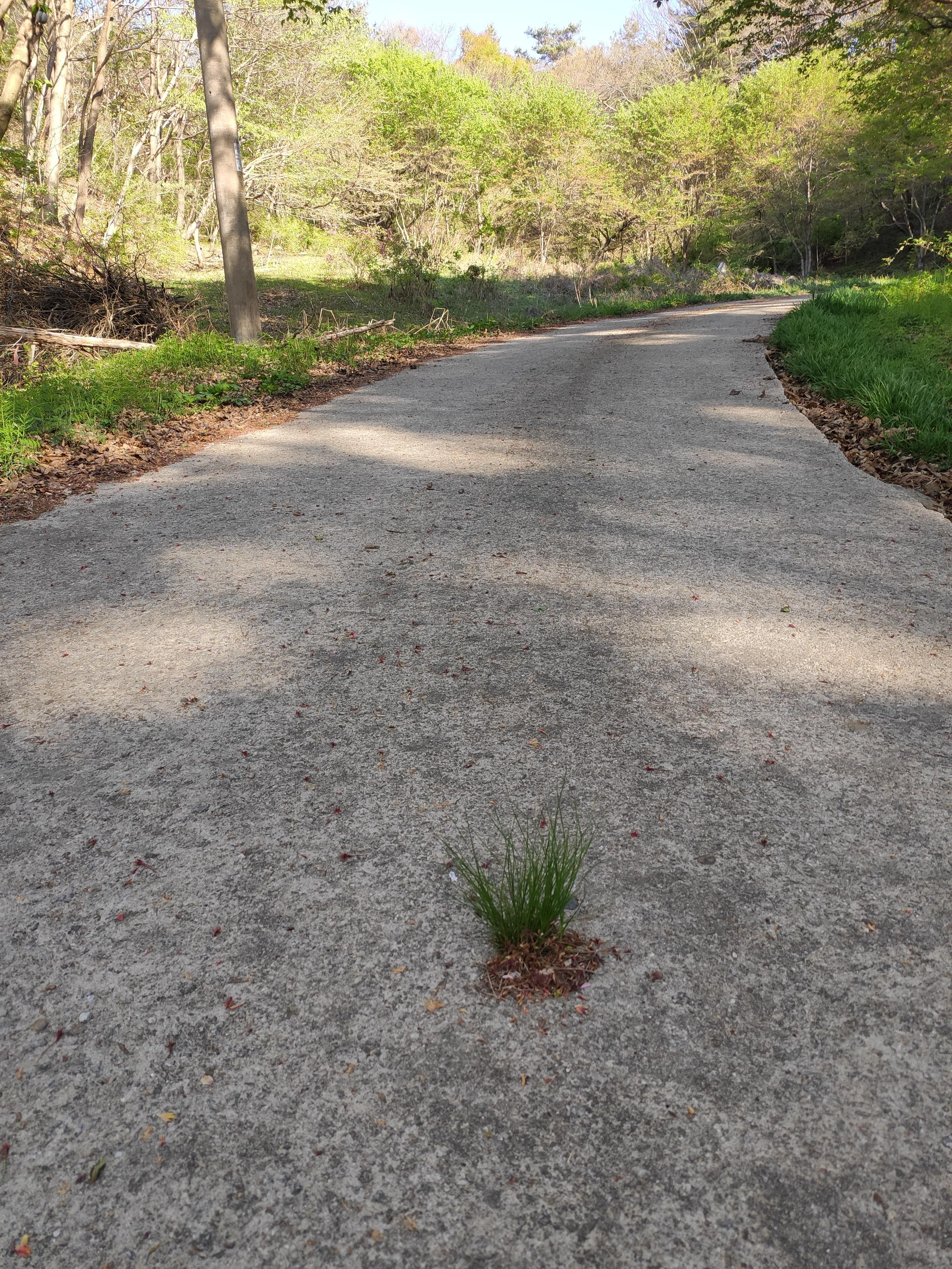 아스팔트 사이를 비집고 잡초가 한 포기 자라있어서 신기하기도 하고 생명력이 끈질기구나 하는 생각이 듭니다.