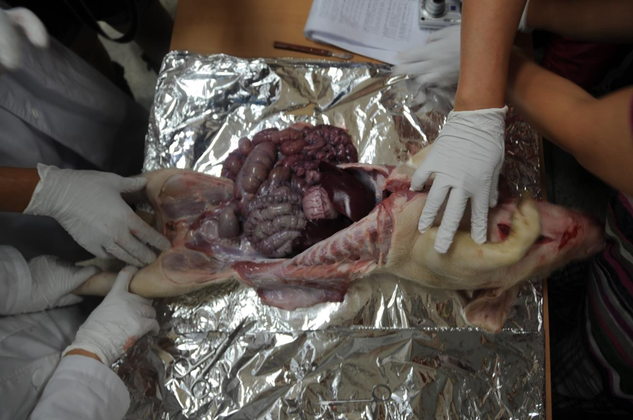 해설 : 개는 위가 크고 소장의 길이가 짧고 굵은 육식동물의 소화기관의 특징을 보인