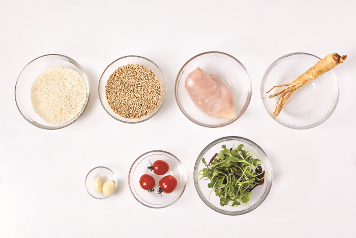 ▶ 주재료 : 쌀(1컵), 귀리(1컵), 마늘(3쪽), 닭가슴살(1쪽)