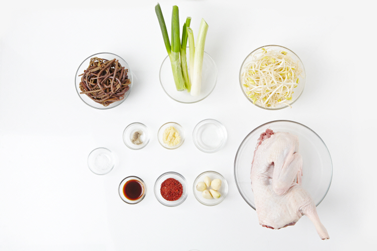 ▶부재료 : 마늘 5쪽, 대파 30cm, 콩나물 140g, 삶은고사리 120g