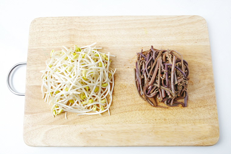 3. 콩나물의 지저분한 부분은 제거하고, 고사리는 먹기 좋게 3등분한다.