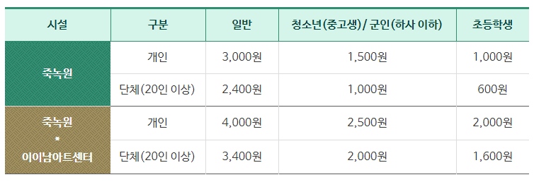 - 정문: 전라남도 담양군 담양읍 죽녹원로 119