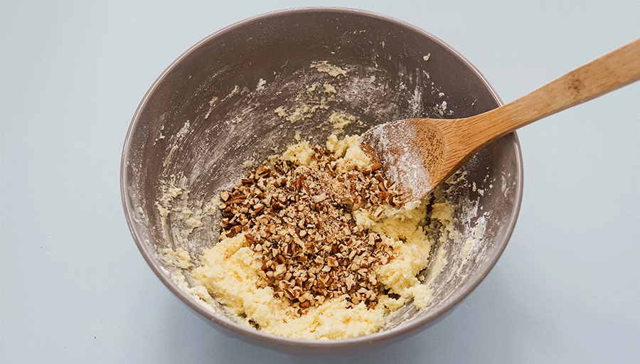 6. 식힌 피칸을 잘게 다져서 반죽에 넣고 가볍게 섞어준다.