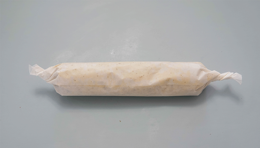 7. 유산지에 반죽을 넣고 원통으로 모양을 잡아준다.