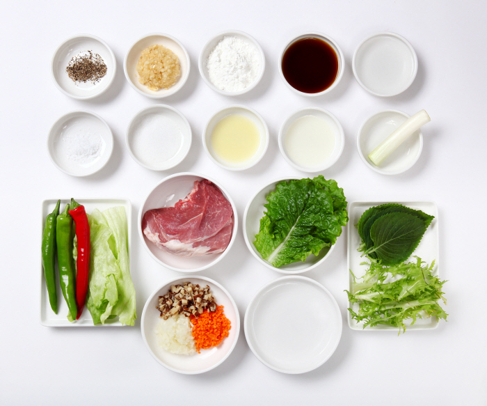 ▶ 곁들이채소: 깻잎 2장, 재래상추 3장, 양상추 1장, 치커리 3장
