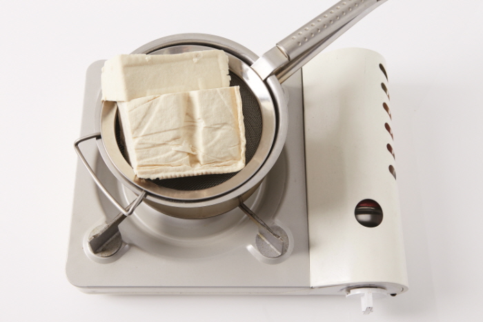 1. 두부(1 2/3모)는 끓는 물(4컵)에 1분간 데쳐 건진다.