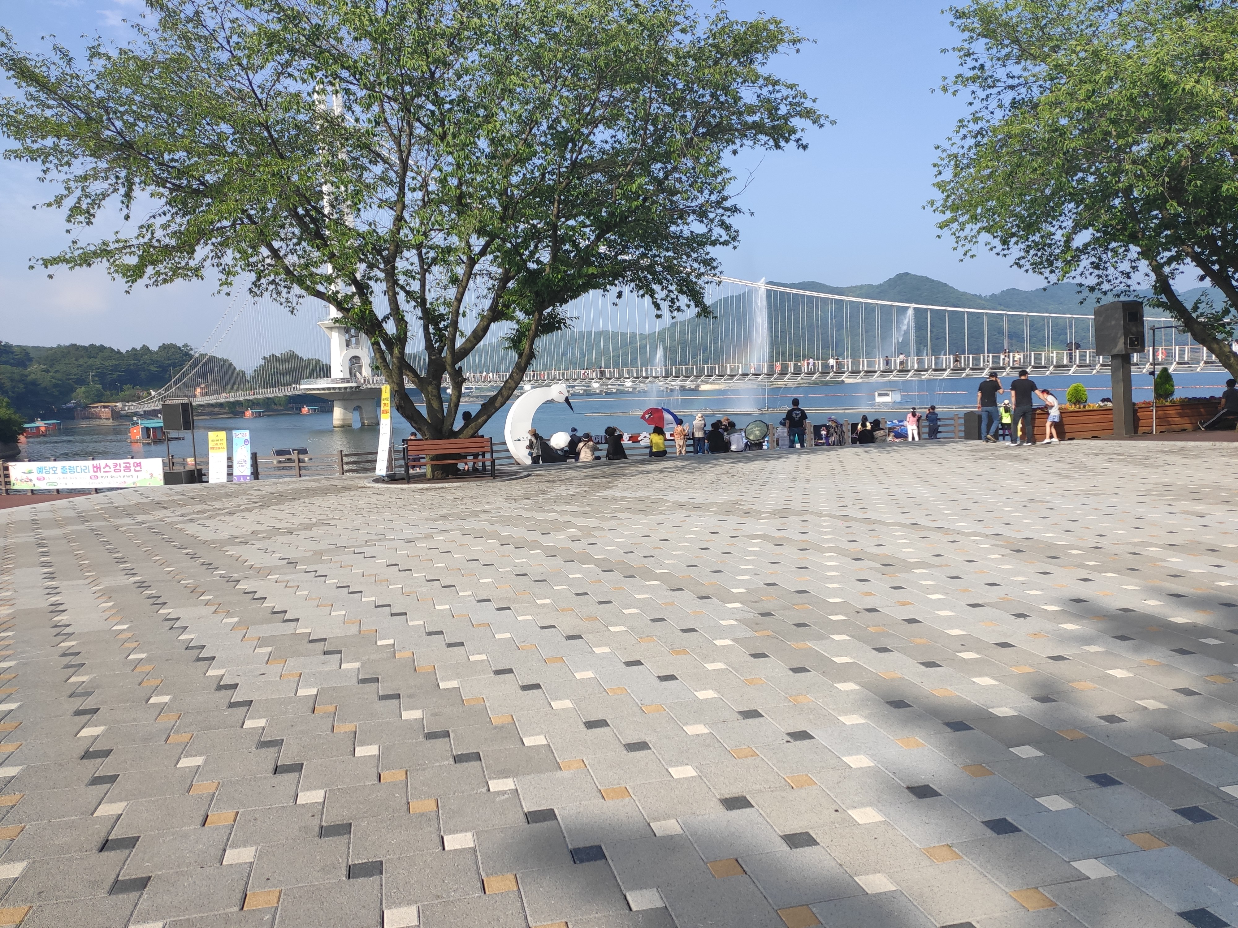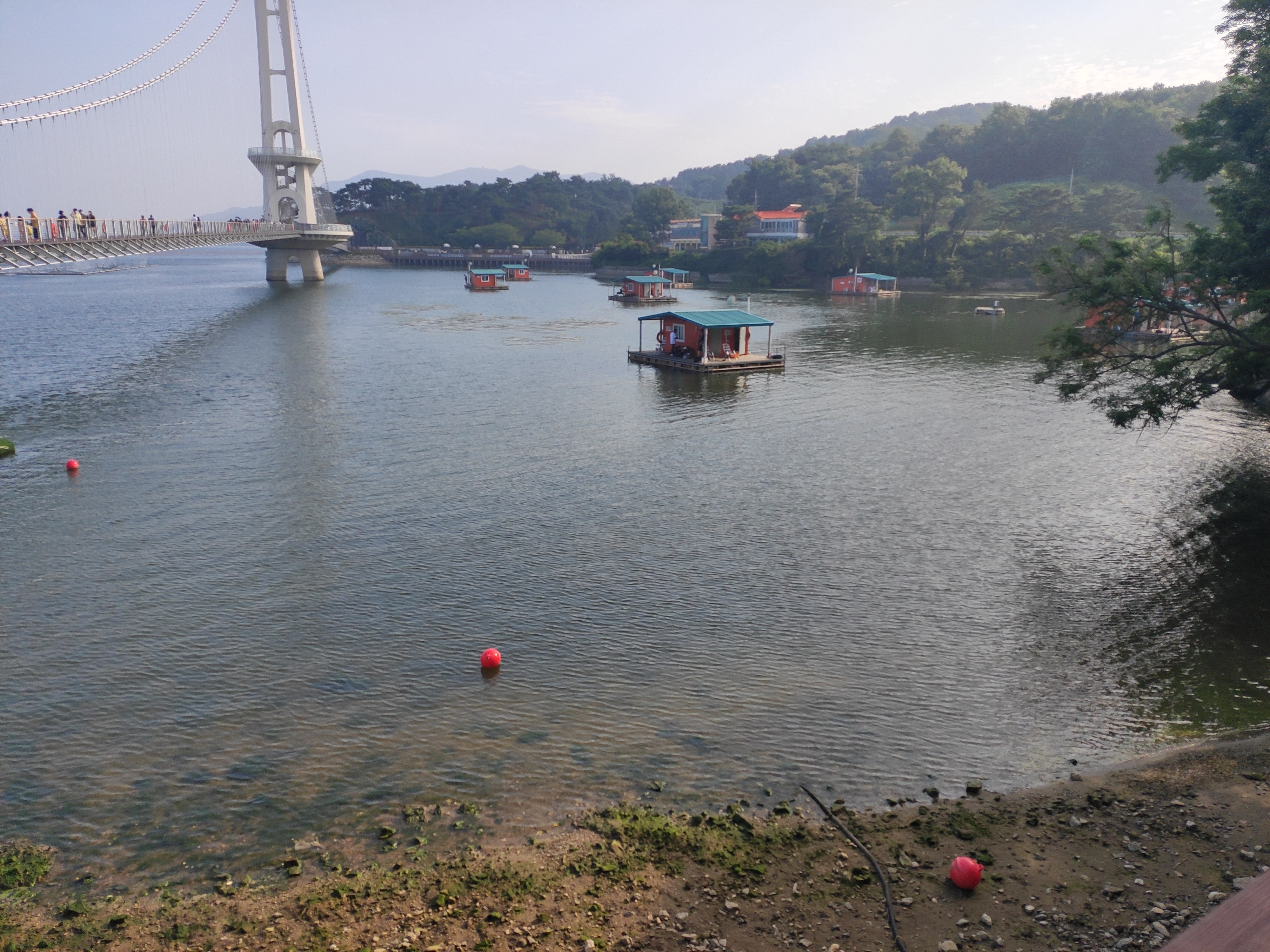 은은하게 흔들리는 출렁다리는 수면 위를 걷는 듯한 색다른 감동을 주며 주탑의 바닥 아래로 수면이 훤히 보이며 아찔한 추억을 선사합니다.