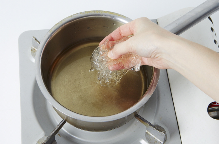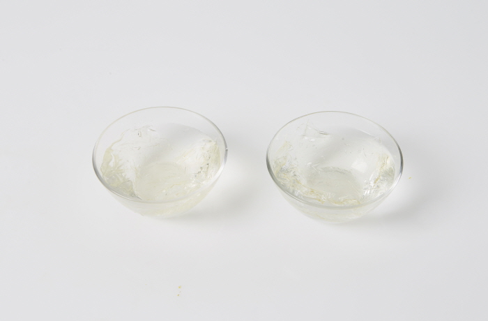 1. 판젤라틴은 4장씩 각각 물에 담가 불린다.