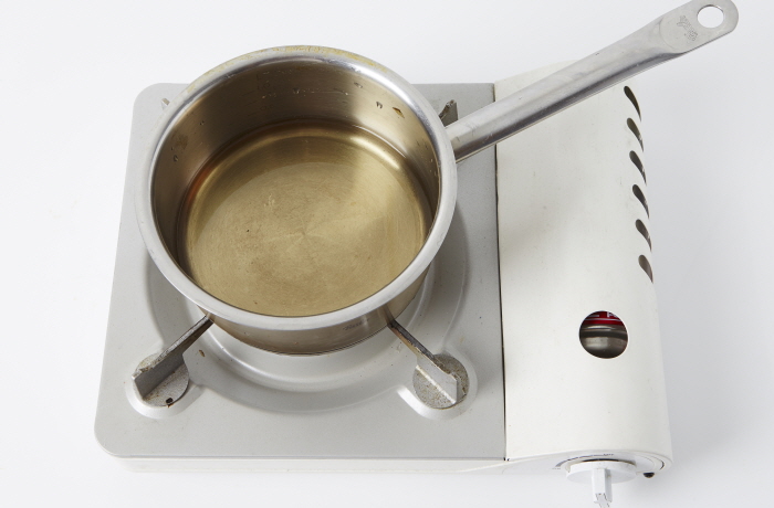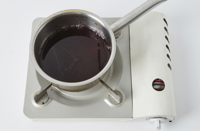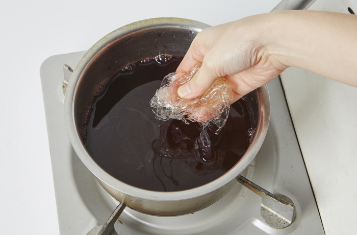 4. 끓기 시작하면 불을 끄고 불린 젤라틴의 물기를 짜 넣고 저어가며 녹인다.