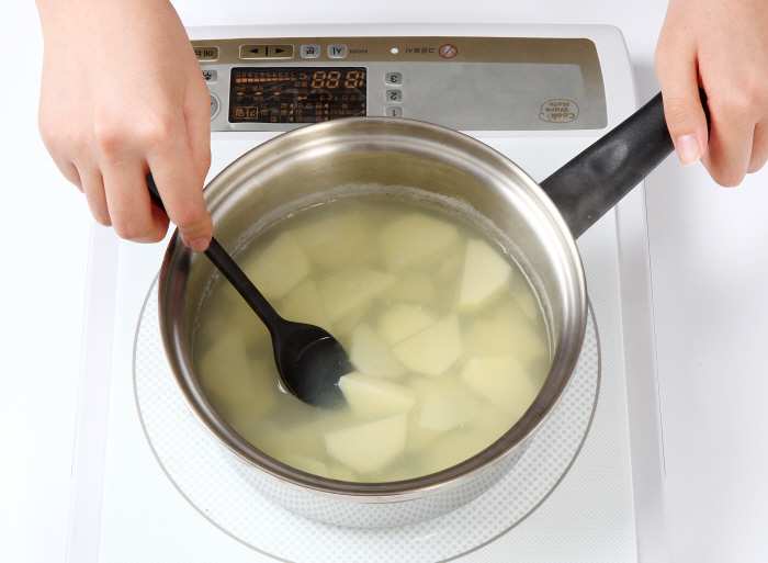 2. 감자는 나박나박 썰어 ①의 콩물에 익힌다.