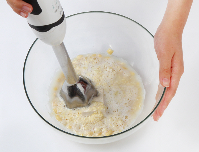 1. 대두는 깨끗이 씻어 하룻밤 불려 세 번 정도 씻고 냄비에 담아 끓기 시작하면 5분만 더 삶아 약간 식으면 데친 두부와 핸드믹서로 곱게 간다.