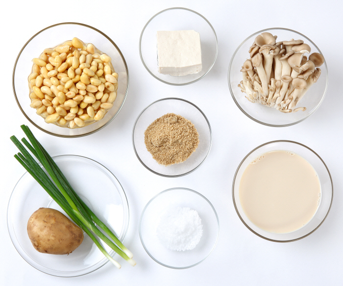 ▶ 재 료 : 대두100g(삶은대두 300g), 물 400g, 데친두부 100g, 두유 1C, 들깨가루 40g