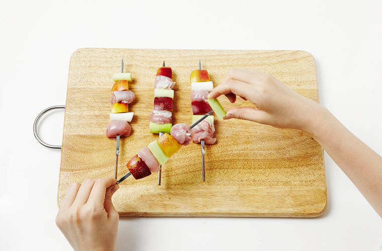 4. 꼬치에 손질한 재료를 번갈아 끼운다.