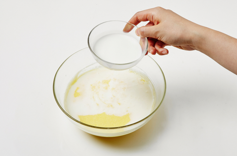 ▶부재료 : 설탕(10T), 녹말가루(1t), 소금(1/2t), 베이킹파우더(1t)