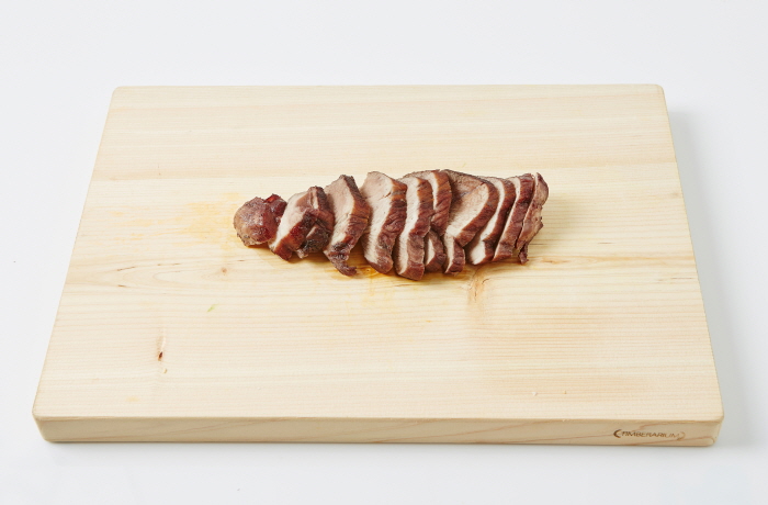 4. 고기를 먹기 좋은 크기로 썰어 담는다.