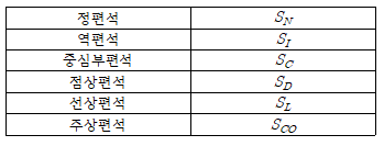 ⓶정편석 기호 : SN ⓷역편석 기호 : SI ⓸주상편석 기호 :S CO