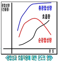 ② 외견상 광합성은 진정광합성보다 온도 상승에 따른 속도 증가가 고온까지 계속되기 힘들며 외견상 광합성은 적온 이상에서는 급격히 감소하고 온도상승에 따라 생장속도는 적온까지 증가