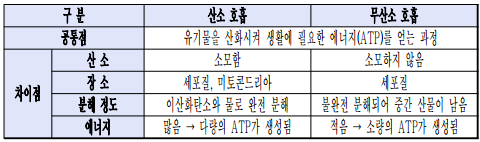 - 산소 호흡과 무산소 호흡의 비교