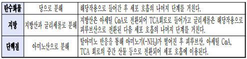 * 호흡기질 : 세포호흡을 통해 분해되어 에너지를 방출하는 유기물(탄수화물, 지방, 단백질)