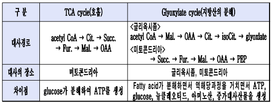 발아하는 종자와 꽃가루에 필요한 많은 양의 에너지와 탄소골격을 효과적으로 제공