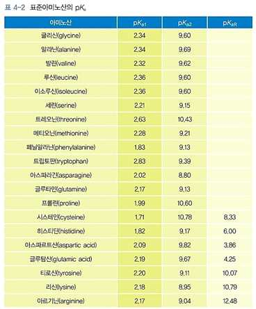 ⋅등전점(isoelectric point, pI) : 전체 전하가 0으로 전기적으로