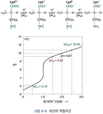 ⋅리신도 3개의 양성자를 낼 수 있는 산이며, 등전점은 2개 아미노기의 pKa값의 산술적 평균에 해당함