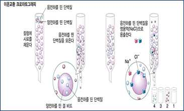 - 이온교환 크로마토그래피 : 전하에 따라 분리