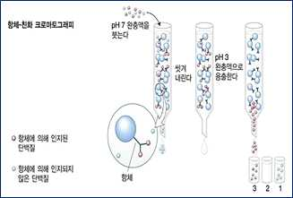 - 친화 크로마토그래피 : 항체 & 항원 등 특이적 친화성을 이용