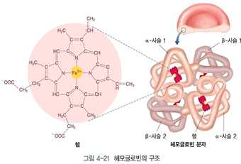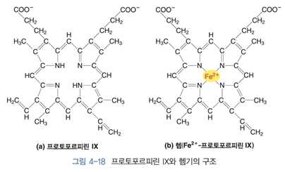 정답 ④ ① 포르피린 ② 철 ③ 히스티딘 잔기 ④ 구리