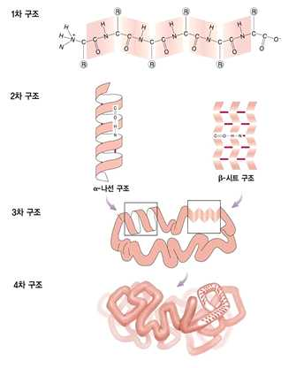 - 4차 : 2개 이상의 폴리펩티드 사슬로 전체적인 입체 구조