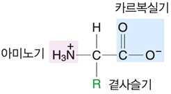 → 탄소원자 + 아미노기 + 카르복실기 + 수소원자 + 곁사슬기 구조