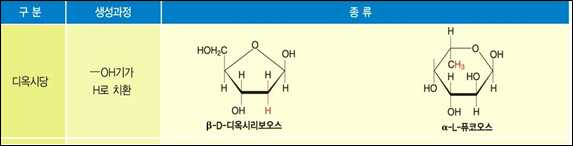 ⋅단당류의 -OH기 한두 개가 수소원자로 치환 → 디옥시당