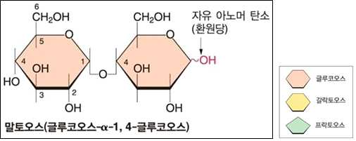 ⋅구리와 같은 금속이온이나 효소가 작용하면 단당류의 1번 카르보닐기와 6번의 알코올기가 쉽게 산화됨