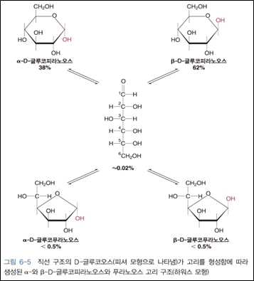 ⋅단당류 특히 오탄당과 육탄당은 대부분 고리 구조로 존재함