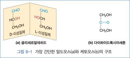 - D-형은 2번 탄소의 수산기가 오른쪽에, L-형은 왼쪽에 위치 → 거울상 이성질체
